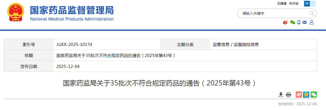 停售、召回!这35批次药品不符合规定 →