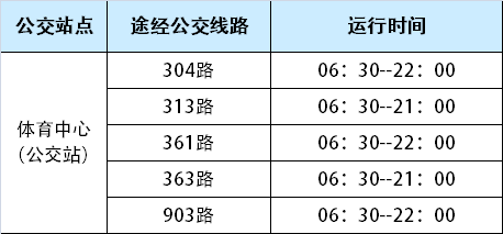 (2)公交出行:体育中心对开设有体育中心公交站点,共有线路5条。