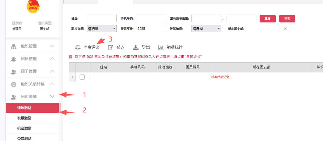 2、团组织在录入团员年度教育评议结果时需要注意什么?
