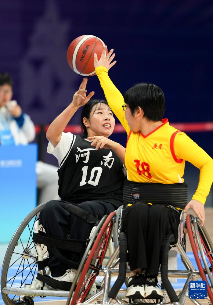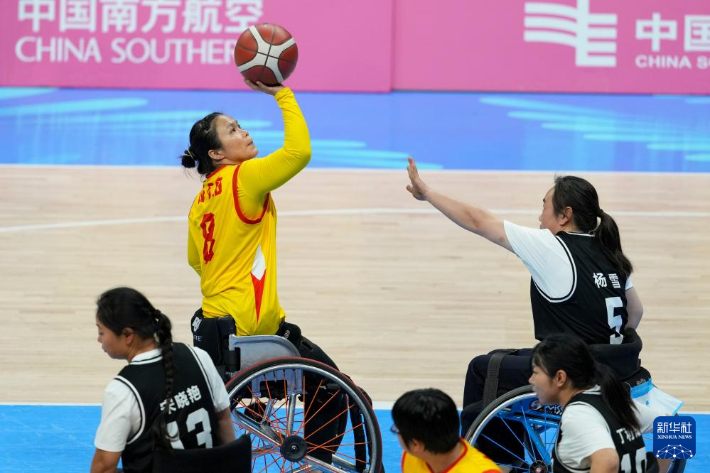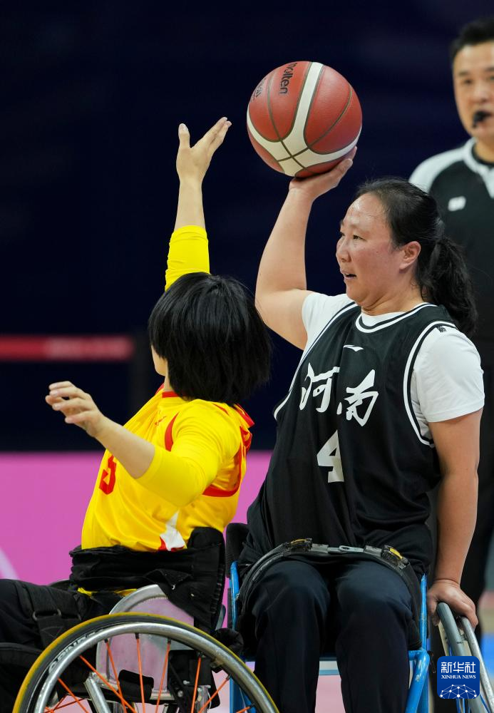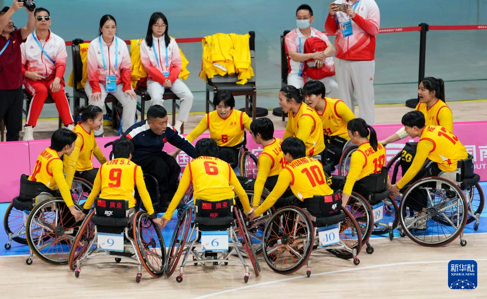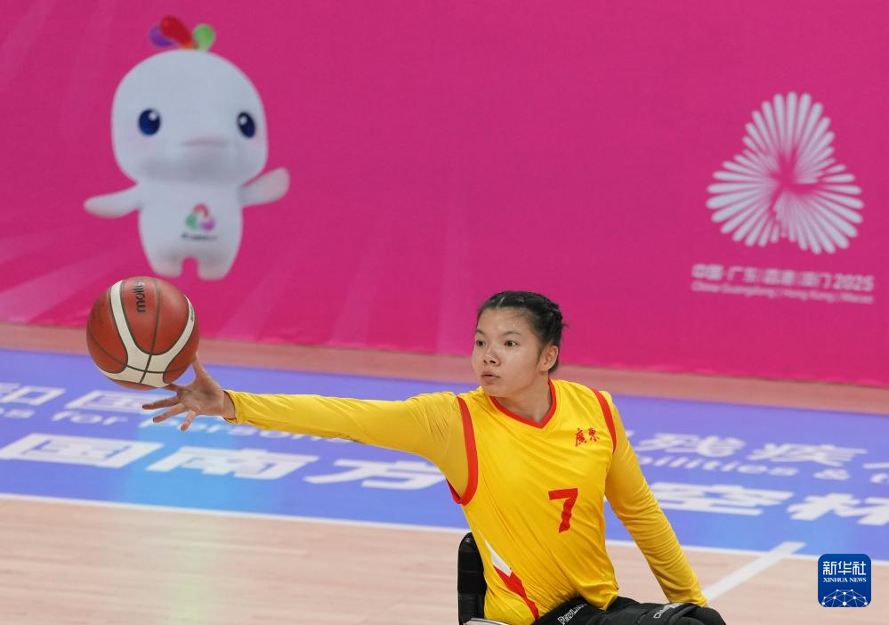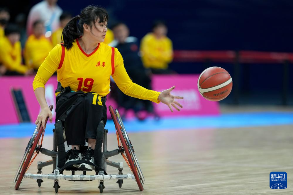当日,在广州举行的全国第十二届残疾人运动会暨第九届特殊奥林匹克运动会轮椅篮球项目女子组小组赛中,广东一团队105比20战胜河南队。