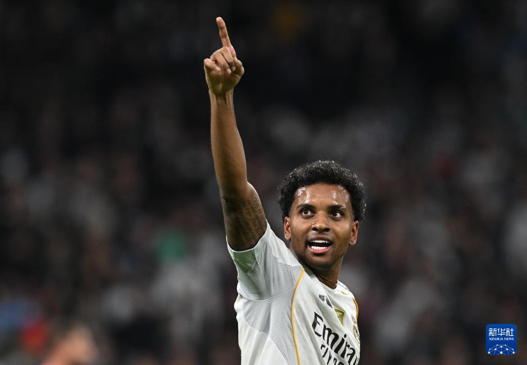 12月10日,皇家马德里队球员罗德里戈庆祝进球。