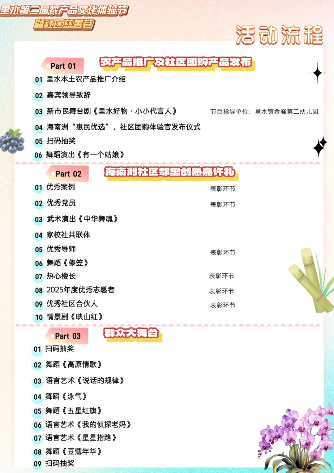 冬藏好物,尽在里水! 12月14日(本周日)14:00 里水“冬藏里物节”重磅来袭! 在海南洲社区党群服务中心 超30个特色摊位汇聚 新鲜农产品、手作好物、暖心美食…… 一场融合土地馈赠与邻里欢笑的 冬日盛会即将开启 邀你来逛市集、尝美食 看表演、买好物 风生新物 本土农产品“甜蜜来袭” 粉糯香甜的灶岗番薯 甜度爆表的棠溪甘蔗 清甜爽口的甘蕉葡萄 姿态优雅的蝴蝶兰…… 里水优质的农产品集体亮相 快来把最新鲜的“里水味道”带回家 还有毛巾、腊味等“里水好物” 一站式逛吃玩购