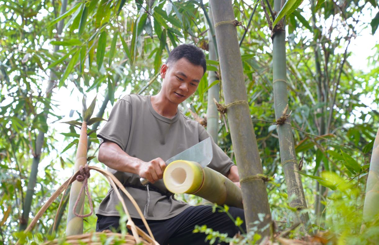 英德的麻竹产业,始于一场“生态换业态”的转型。“以前种桉树,山是黄的,水是浑的;现在种麻竹,山绿了,水清了,钱袋也鼓了。”谢绍春回忆,三年前他响应“退桉种竹”政策,把自家120亩低效桉树林改种麻竹,靠着政府发放的种苗补贴和技术指导,当年就实现了增收。