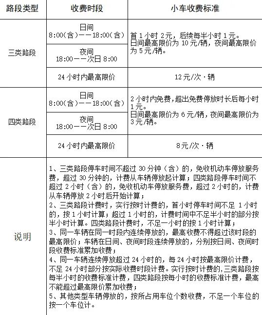 机动车停放服务收费标准