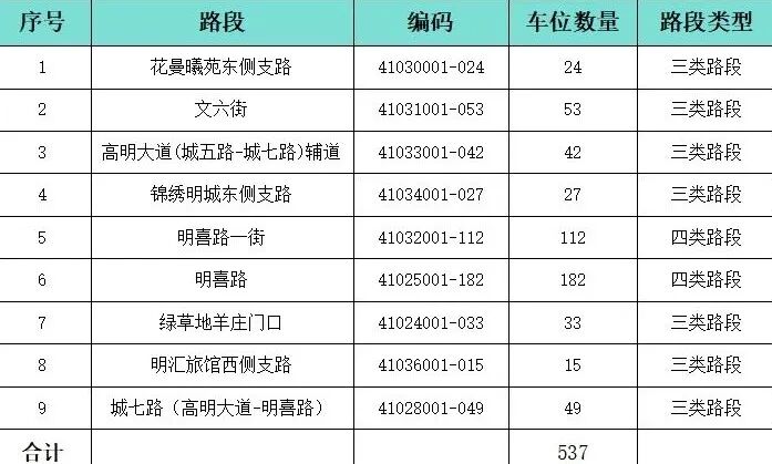 为进一步规范道路机动车停放管理,提高路边泊位周转效率,引导车辆有序停放,减少车辆长期占用公共停车位,缓解市民办事、游玩、消费和周边居民的停车难问题,明城片区的花曼曦苑东侧支路、文六街、高明大道(城五路-城七路)辅道、锦绣明城东侧支路、明喜路一街、明喜路、绿草地羊庄门口、明汇旅馆西侧支路、城七路(高明大道-明喜路)计划于2025年12月30日早上7时起正式开展停车收费管理,车位总数为537个。