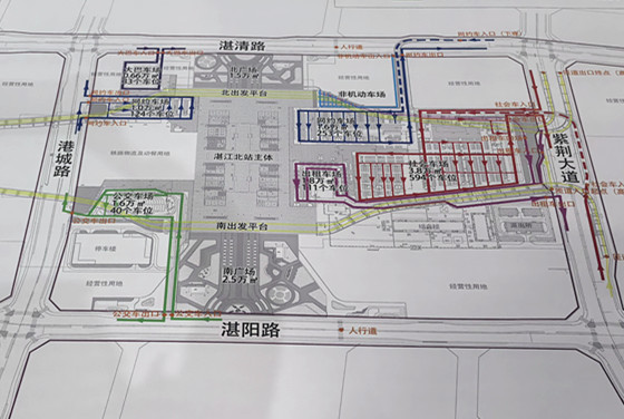 2.北站周边湛清路、紫荆大道、港城路为核心接驳路段,全程按导向车道行驶,禁止随意变道、违停;南北落客平台仅提供临时下客服务,切勿长时间停留,否则将面临处罚;