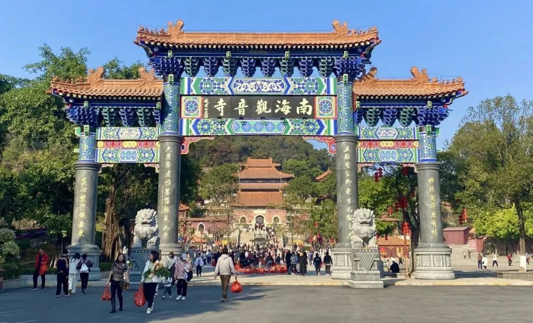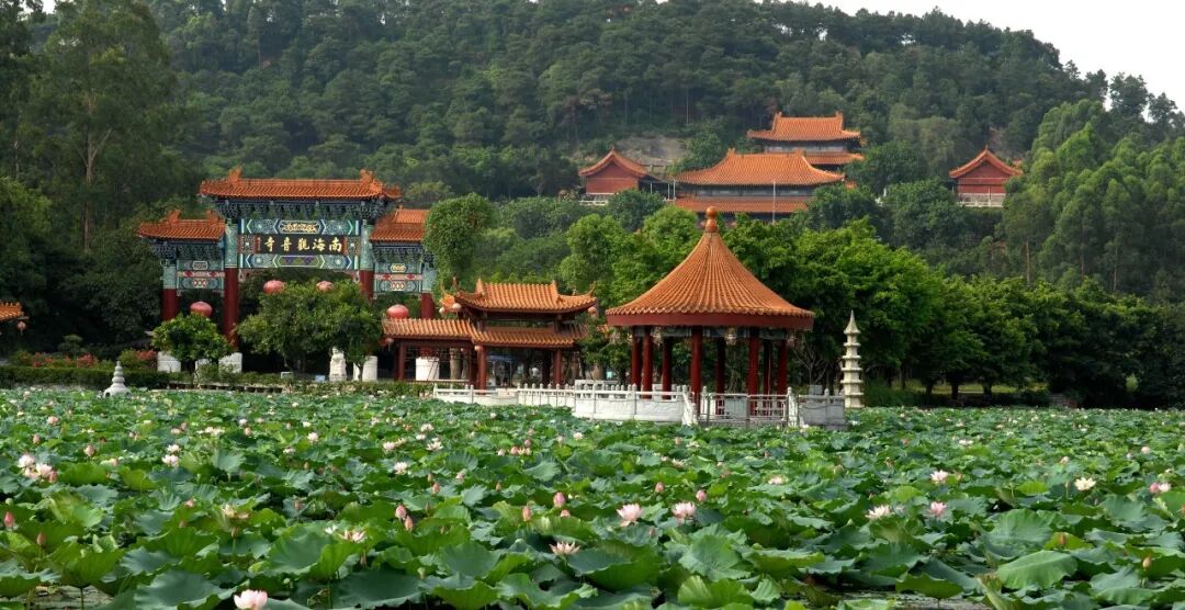 南海观音寺位于南国桃园内,寺始建于宋,依山而建