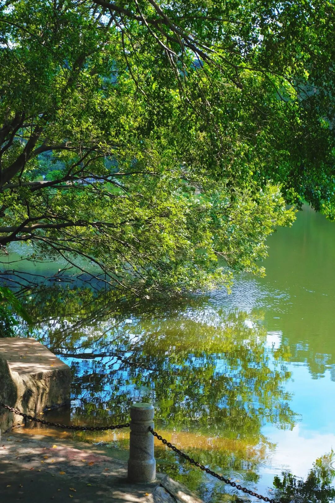 寺前30余亩莲花池,夏日荷香塔影,景色宜人
