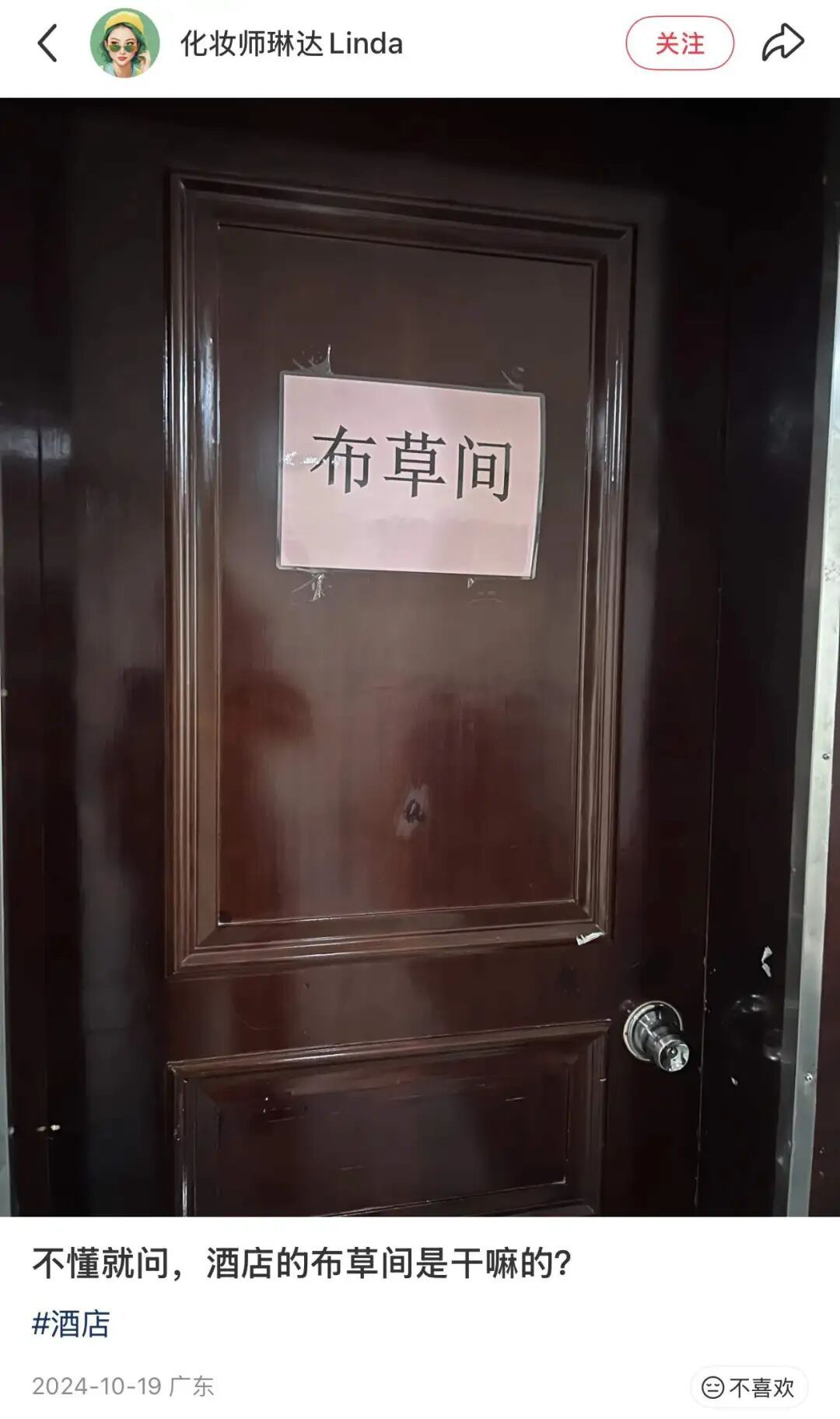 明明和草半点不沾边,为啥偏偏要叫这个名字?直接叫“织物间”“巾被储藏室”难道不更直白易懂吗?布草间的各种用品,又为什么都是白色的?