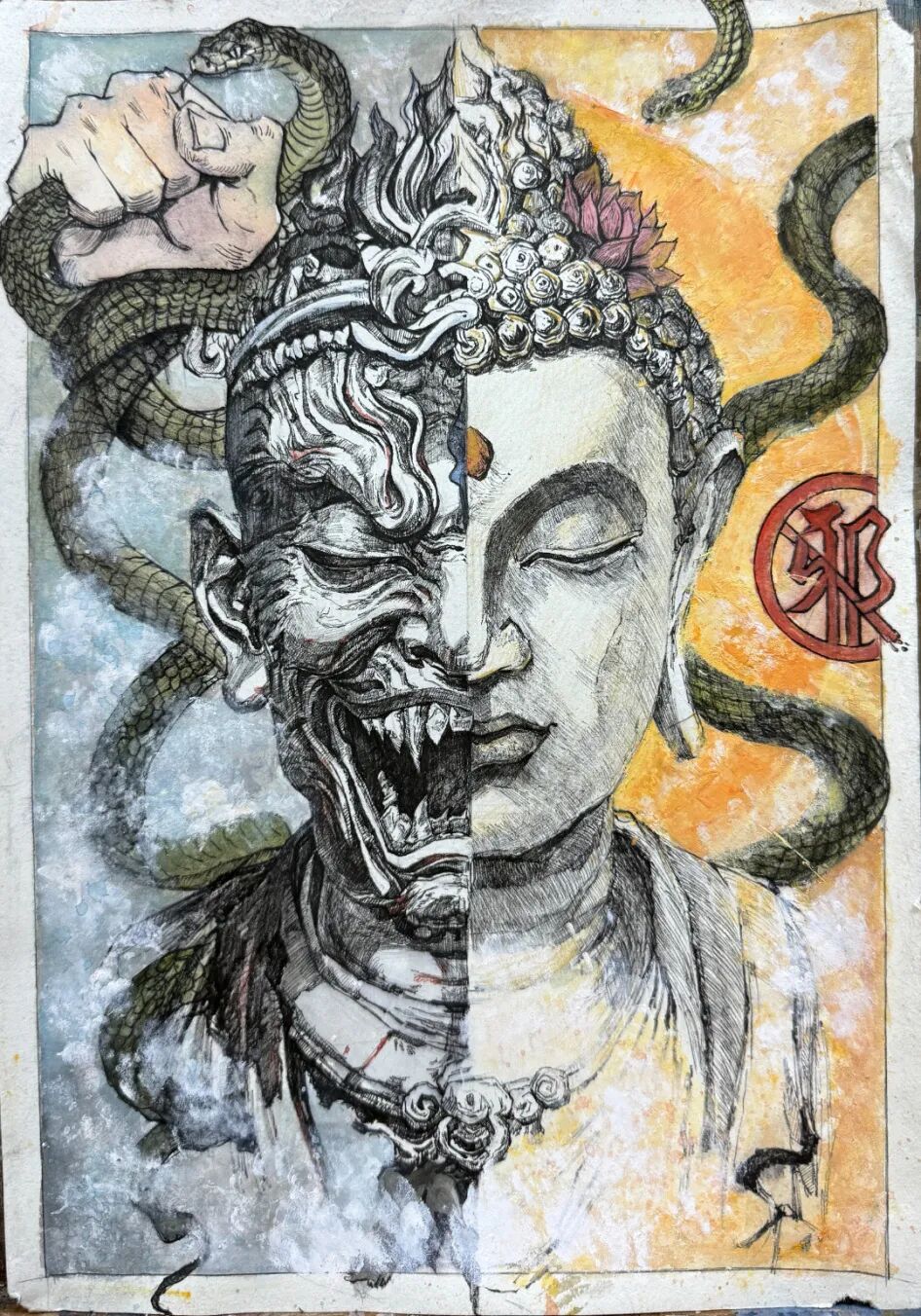 二等奖:黄雯浠《醒狮镇邪 科学护航》、陈家祺《破邪·向光》、郭紫晴《诛邪》