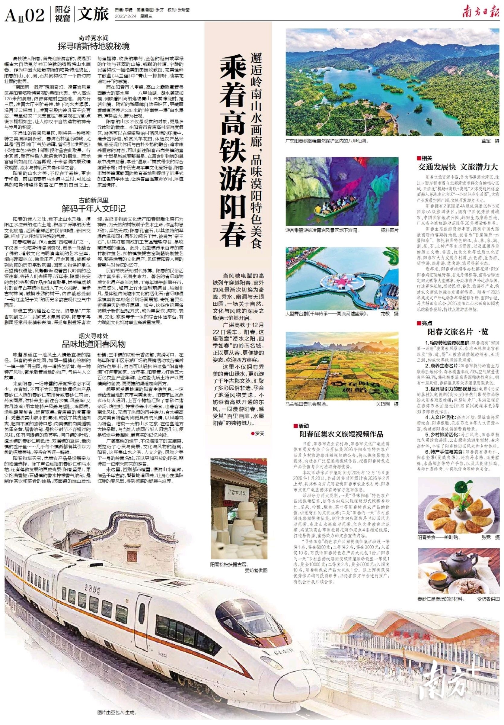 当风驰电掣的高铁列车穿越阳春,窗外的风景渐次切换为奇峰、秀水、幽洞与无垠田园,一场关于自然、文化与风味的深度之旅便已悄然开启。