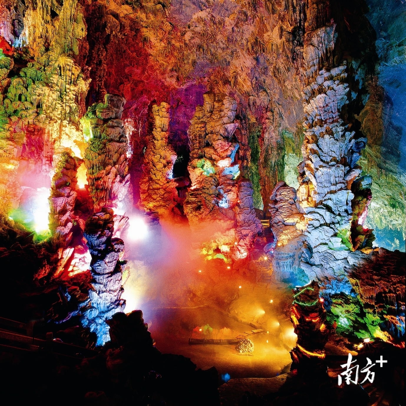 “南国第一洞府”瑰丽奇幻。凌霄岩风景区是阳春喀斯特景观的典型代表。步入高达120米的洞府,仿佛穿越时空隧道。洞内分三层,凌霄大厅空旷奇伟,地下河水声潺潺,沿百步云梯而上,凌霄宝殿内钟乳石千姿百态,“寿星迎宾”“灵芝巨柱”等景观在光影点缀下栩栩如生,让人惊叹于自然造物的神奇与岁月的积淀。