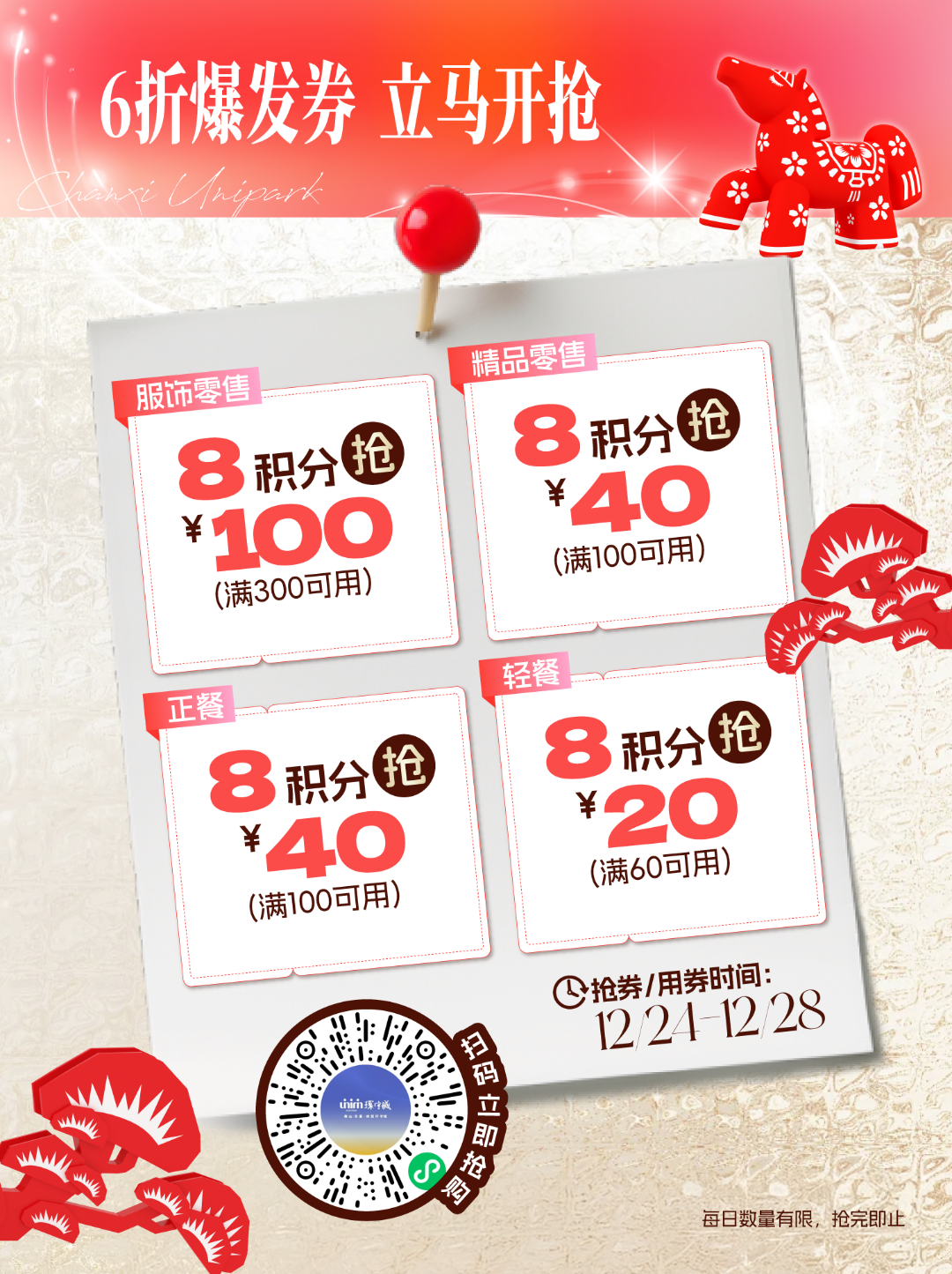 抢券/使用时间:12/24-12/28 10:00-22:00