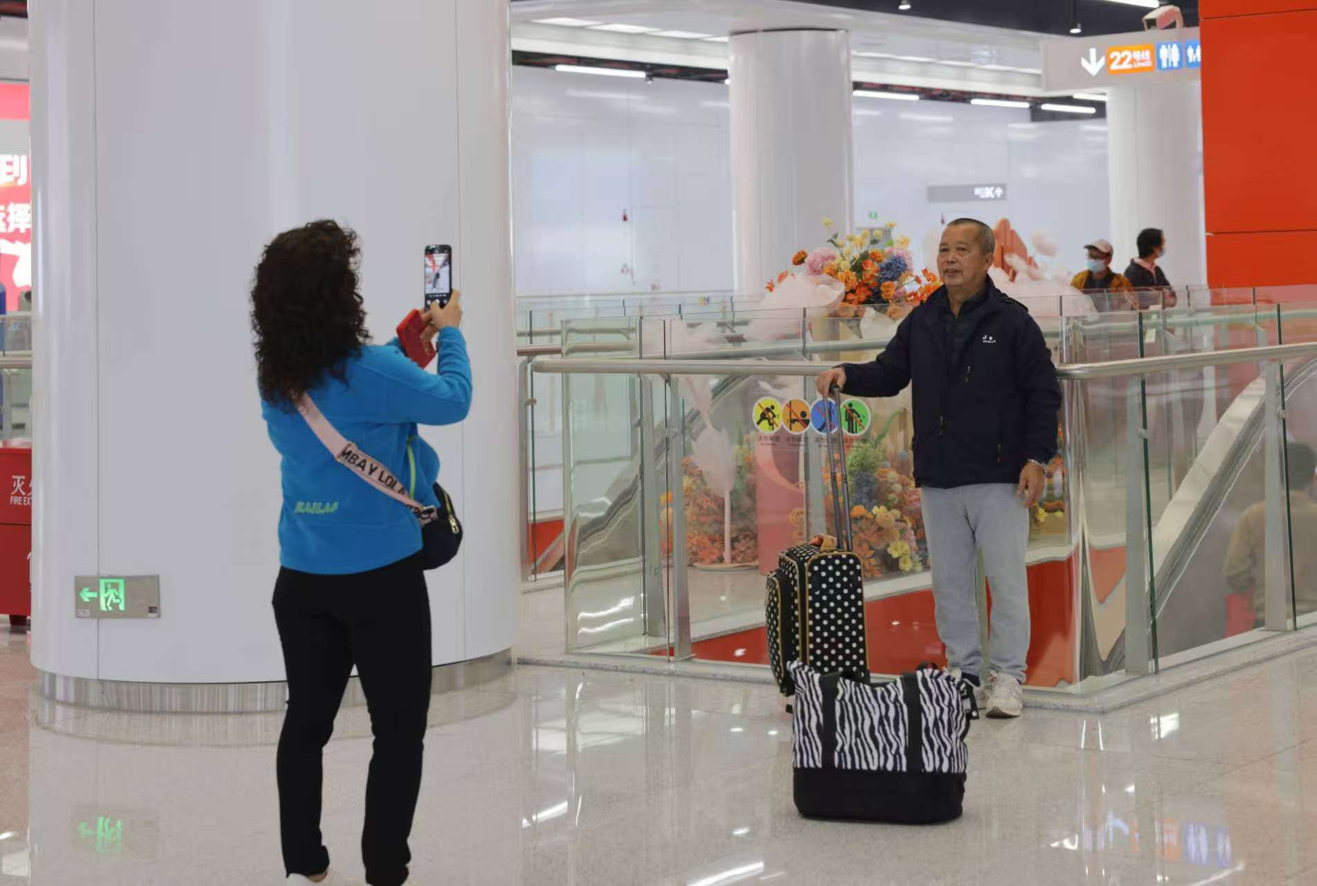 开通当天上午,不少市民纷纷前往新线尝“头啖汤”。家住花地湾站附近的李先生表示,之前自己去广州南站,一般坐地铁一号线,从花地湾坐到公园前,然后从公园前转二号线到广州南站,全程要50分钟;现在二十二号线全线开通了,李先生说道:“我现在去广州南站比原来足足节约一半的时间,坐一号线从花地湾到芳村,再换乘二十二号线从芳村直达广州南站,全程只要25分钟左右。”