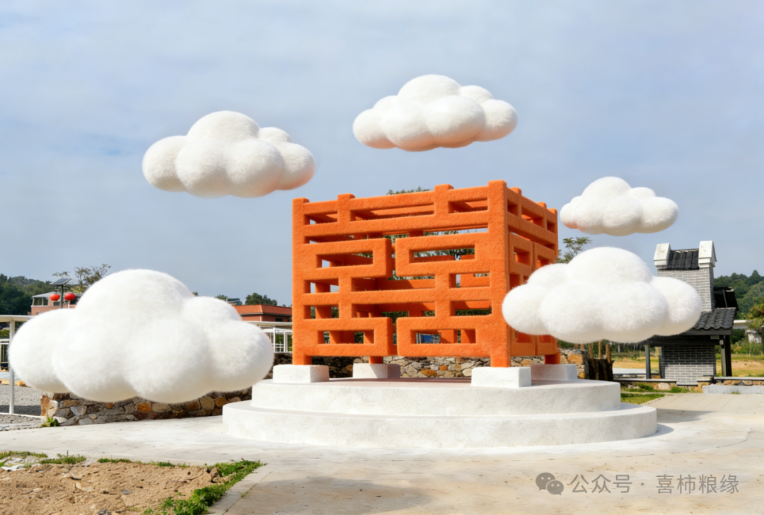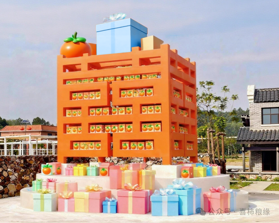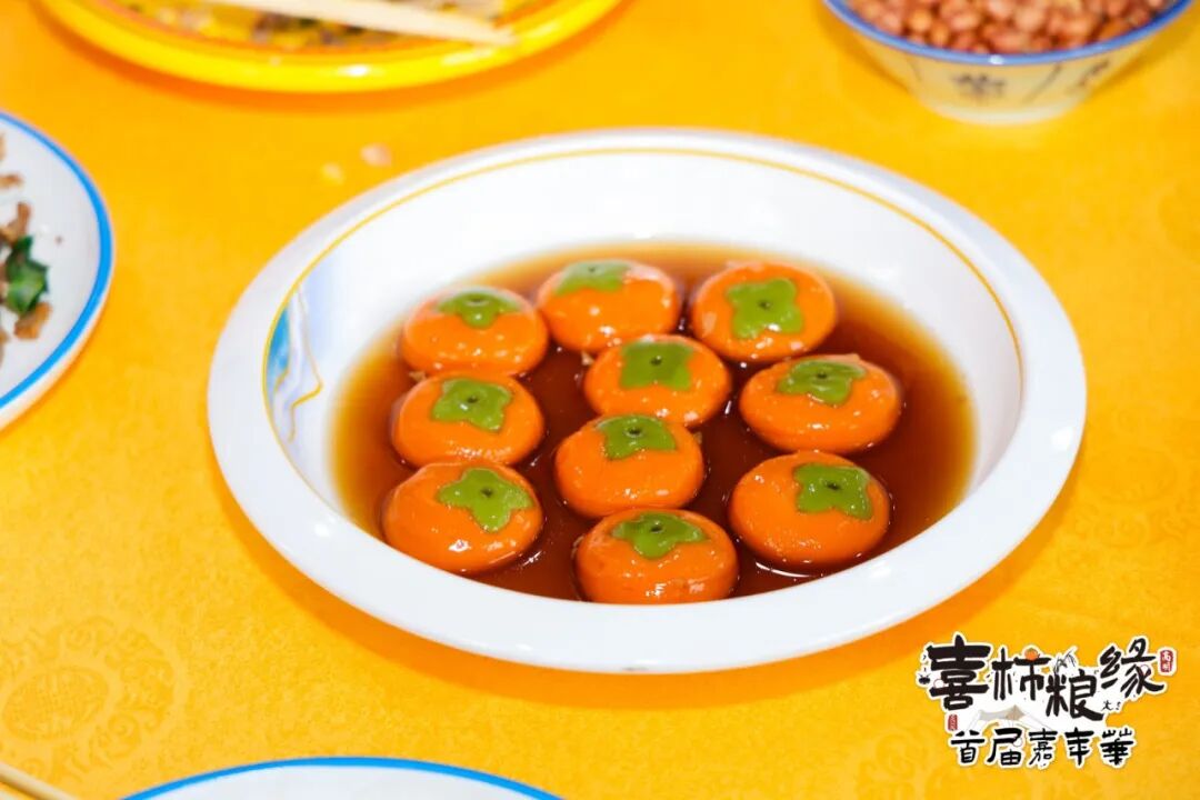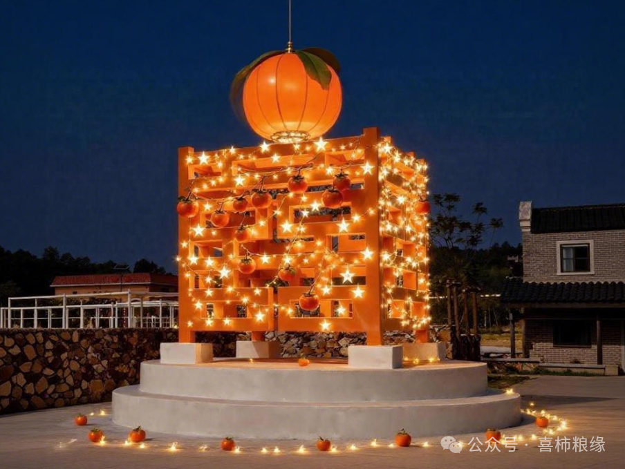 园区精心打造的“喜”文化创意打卡点,成为拍照圣地,不少游客身着美衣定格“柿柿如意”的田园大片。
