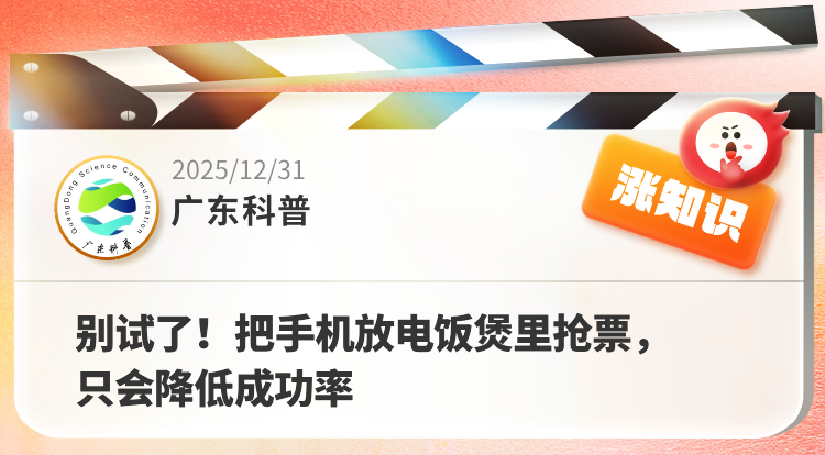 最近,一种特殊的抢票方法火了。不少网友分享抢票经验时提到:把手机放进电饭煲内胆里,再狂点屏幕,就能大大提高抢票成功率。难道电饭煲真的是抢票的物理外挂?@广东科普