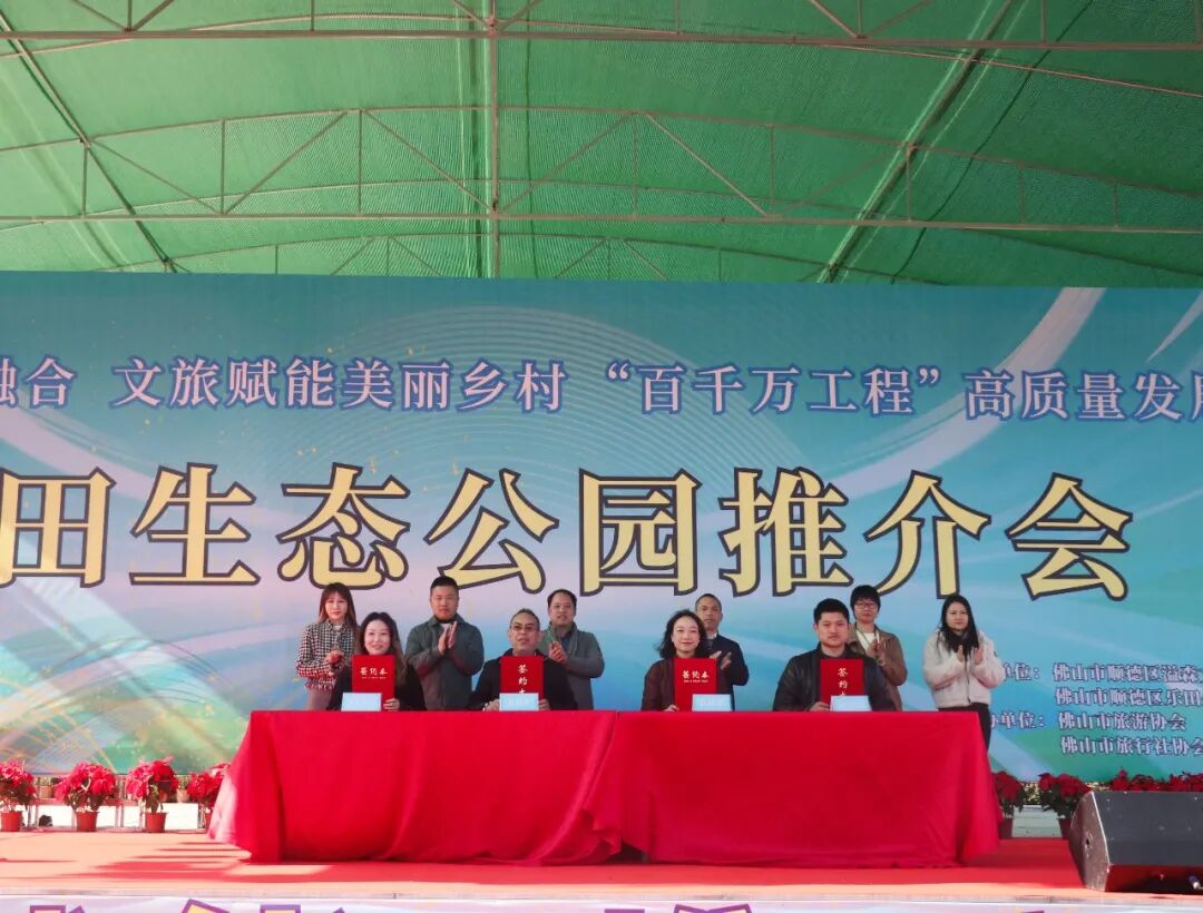 1月8日,顺德北滘乐田生态公园文旅推介会成功举办。现场,佛山市四山两江产业大联盟文旅人才研究站正式揭牌,并进行了一系列的项目签约仪式,涵盖农文旅人才创新研究、农旅产业创新战略、科普与旅游双IP共建等多个领域,将进一步推动政企社、文化机构间的资源整合与优势互补。佛山市农科所、佛山鲲鹏现代农业研究院等相关单位代表参加了活动。