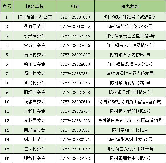 非佛山户籍镇内企业员工也可选择在陈村入伍。