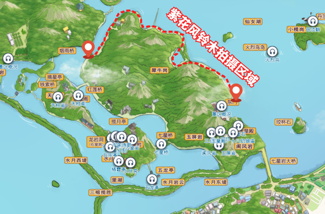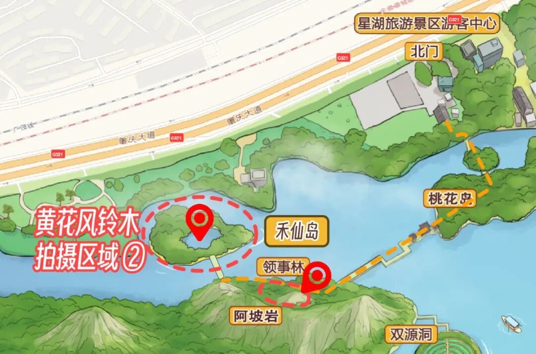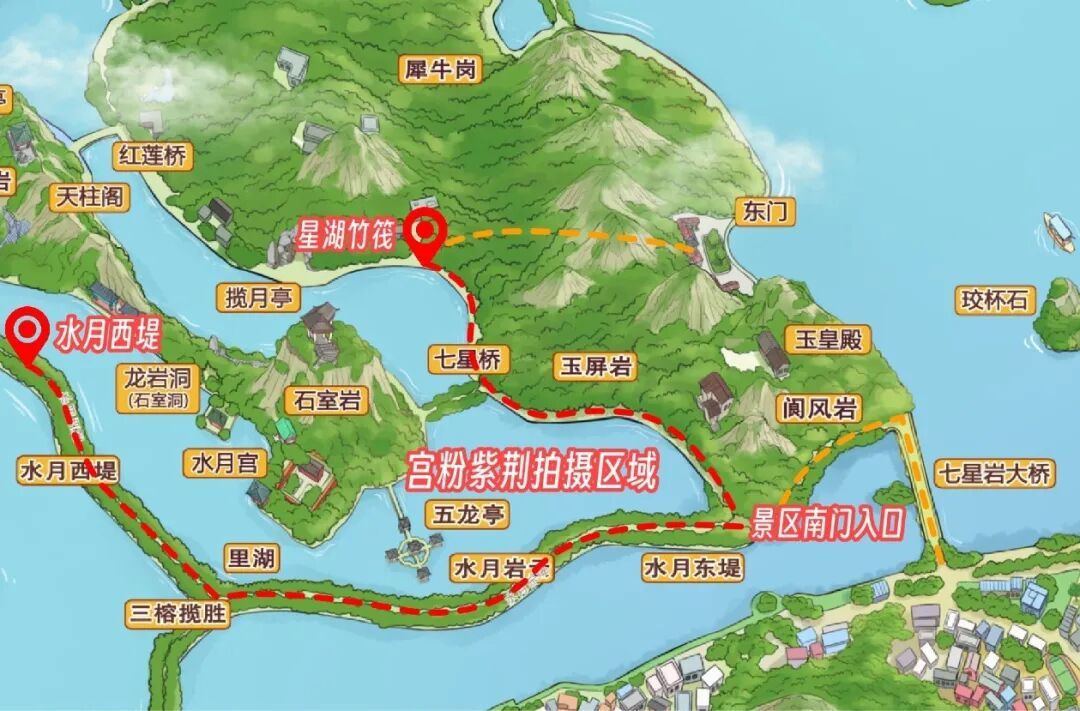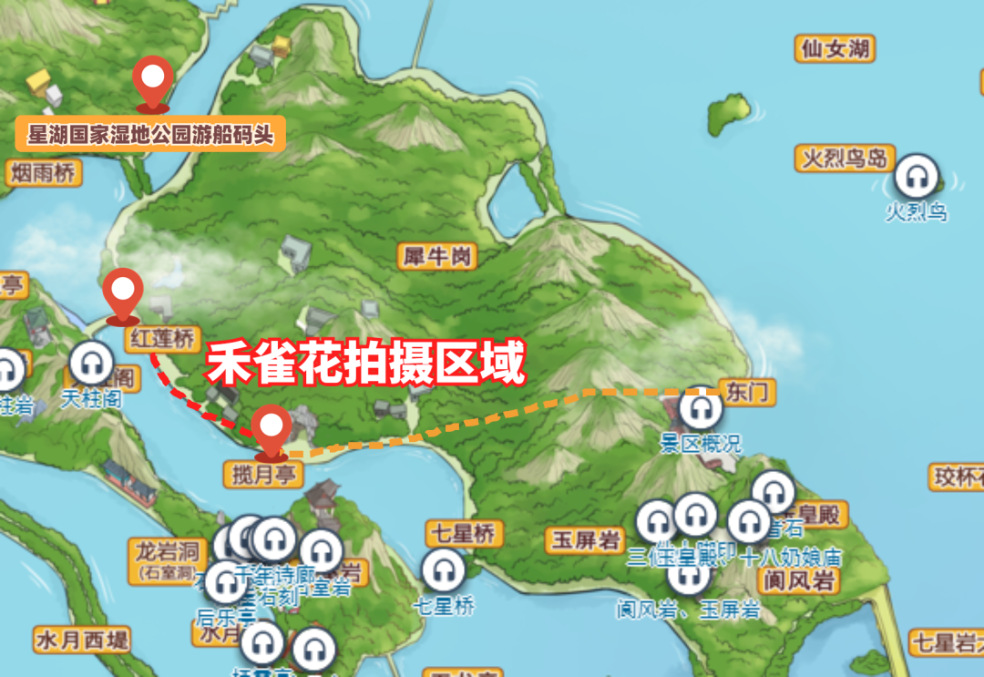 七星岩东门游客服务站旁边临时出入口至七星岩中心区湿地码头路段(沿犀牛岗)