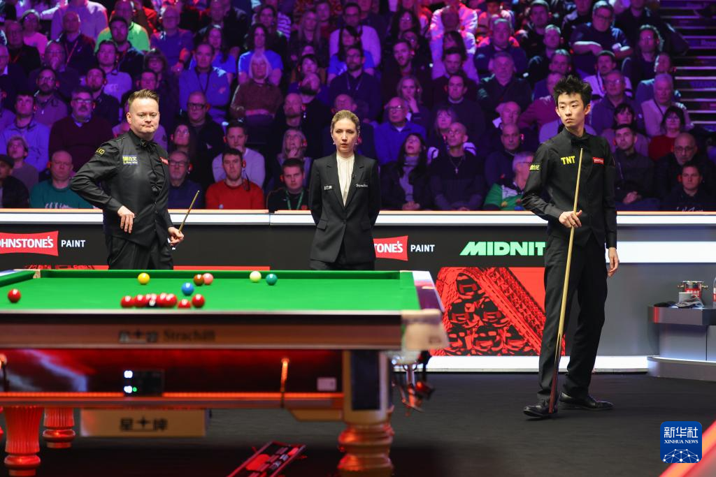 1月11日,吴宜泽(右)与肖恩·墨菲(左)在比赛中。