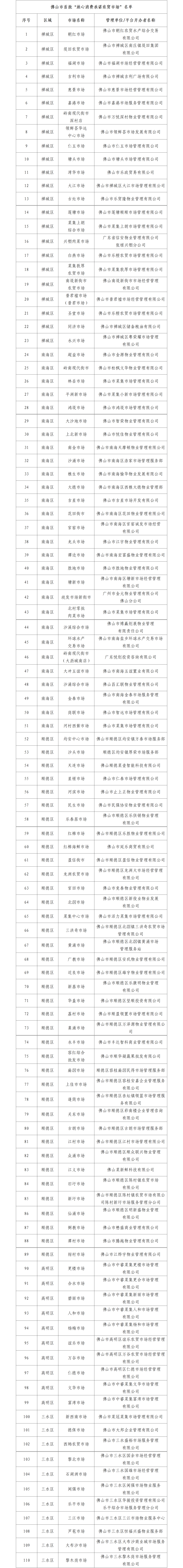 佛山首批“放心消费承诺农贸市场”名单出炉