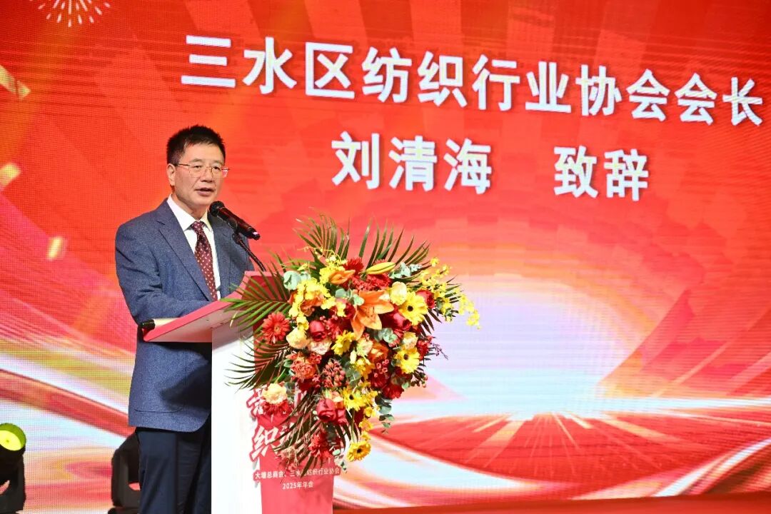 年会现场,三水区纺织行业协会会长刘清海细数年度佳绩:佳利达染色MLD项目摘得2025全球水奖,CCUS项目斩获中国循环经济协会科学技术奖一等奖,CO₂吸附剂研发项目荣获日内瓦发明展金奖,中国印染行业协会广东办事处成功落户……一项项硬核成果,为三水纺织印染产业高质量发展树立起新标杆。