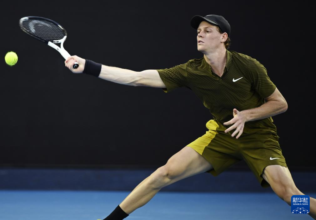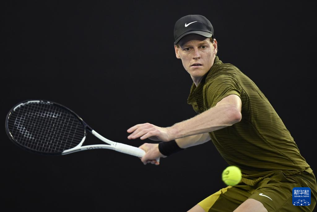 1月20日,辛纳在比赛中回球。