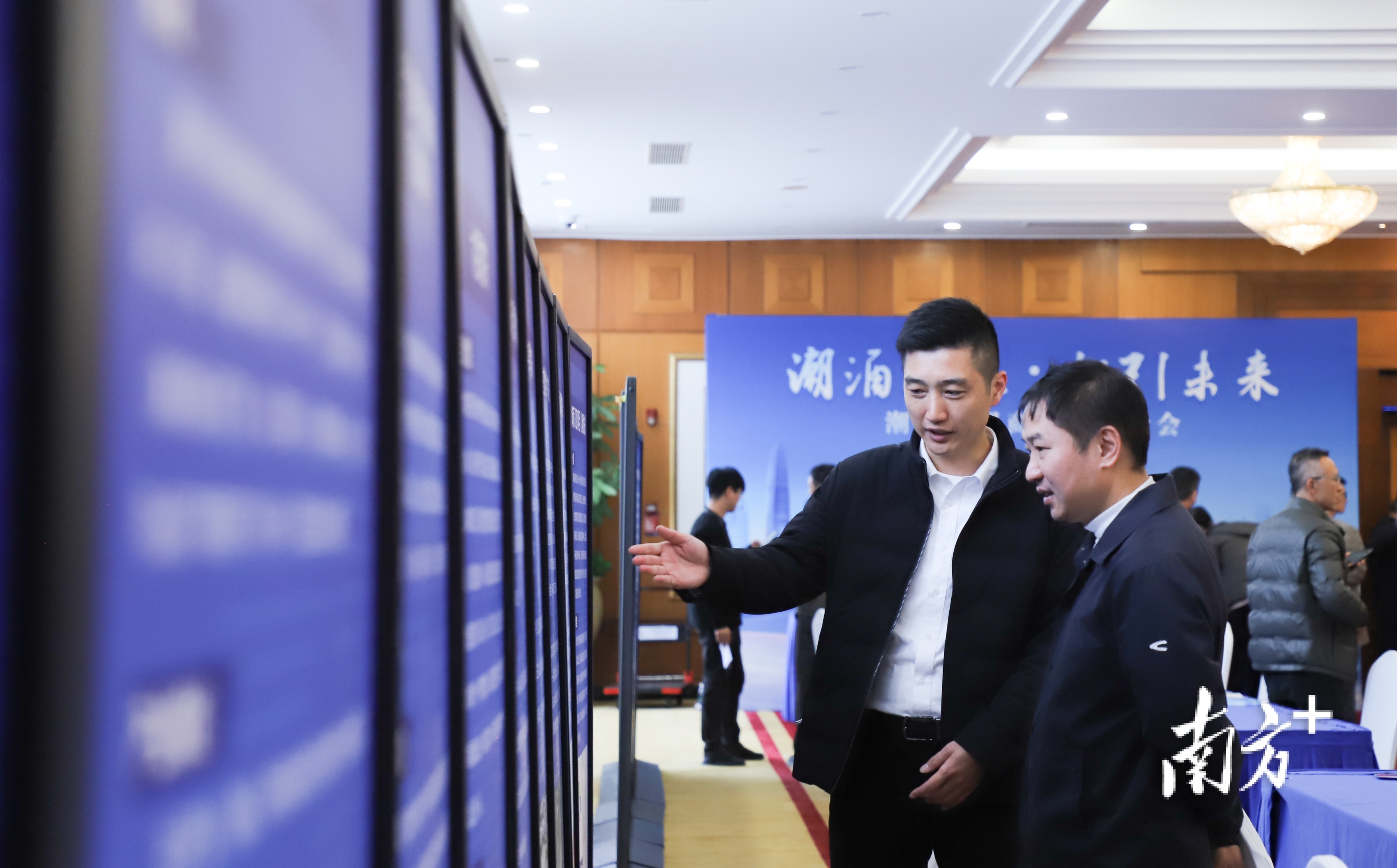 会场设置洽谈区与政策咨询点,各县区业务骨干及潮州市招商先锋队专员与客商面对面交流。现场展板还呈现了19个招商项目,涵盖智能制造、现代服务、文旅融合等领域,吸引众多企业关注咨询。