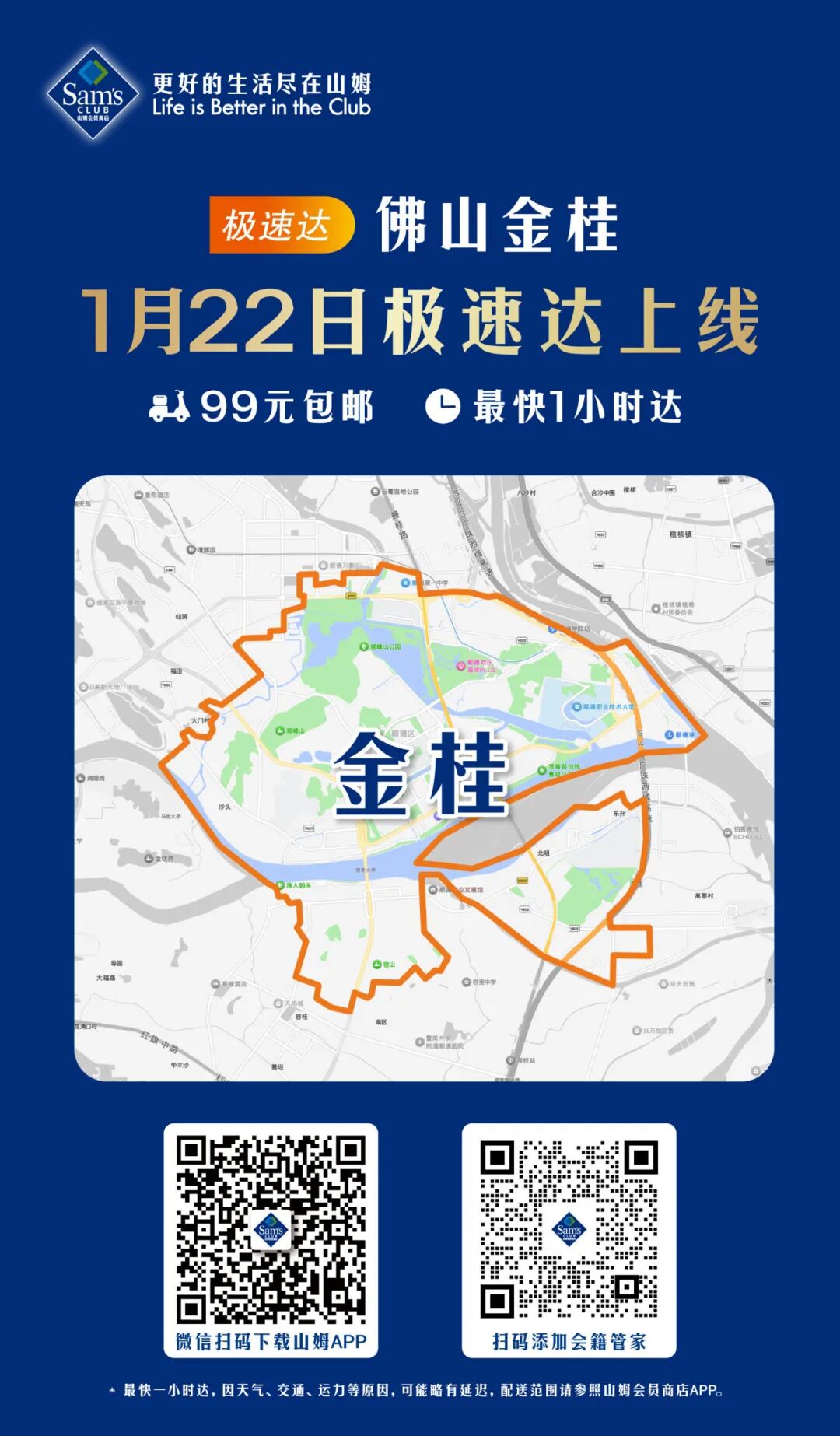 近日,山姆会员商店顺德店正式挂牌,意味着顺德市民距离线下体验山姆购物又近一步。与此同时,一项更贴近日常需求的便民服务已率先启动:自今日(1月22日)起,佛山金桂部分区域正式开通山姆“极速达”配送服务。