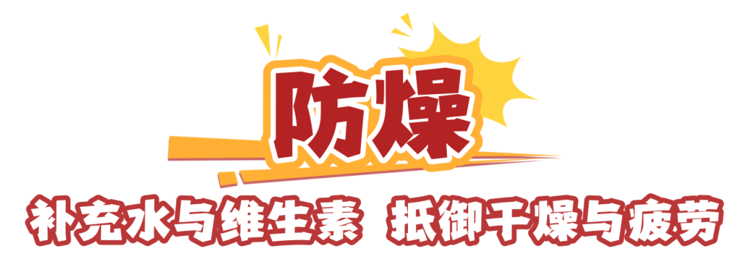 ✅每日足量饮水,并可适当食用汤羹、粥品以润燥。