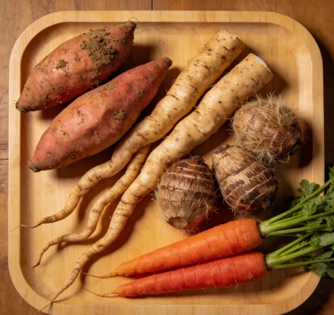 红薯、山药、芋头、胡萝卜等富含抗性淀粉,可缓慢释放能量,有助于稳定血糖,提供持续温暖。