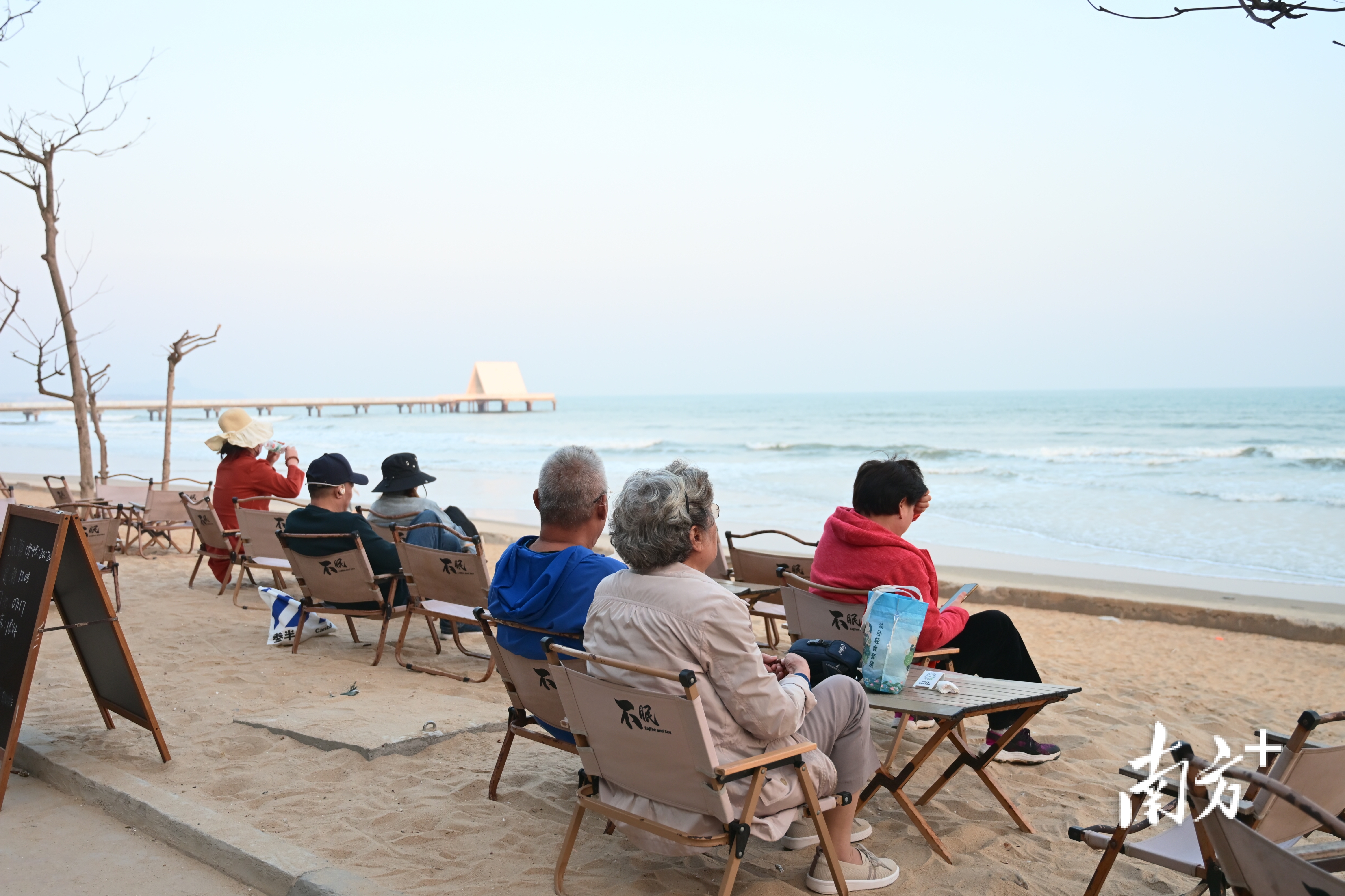 旅居游客在鼎龙湾看海喝咖啡。吴东俊 摄