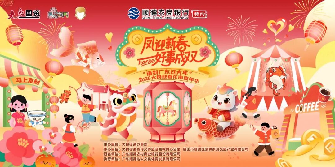 2026大良迎春花市嘉年华以大良智谷公园为核心圈,旨在打造一个代表湾区水准、彰显凤城特色、引领消费热潮现象级文旅品牌活动。今年规模将全面升级:展位将扩容至500个、更特邀优质KOL打造创作展位、动线规划及交通出行更加合理等,与市民游客共创一场被全城铭记的新春盛宴!