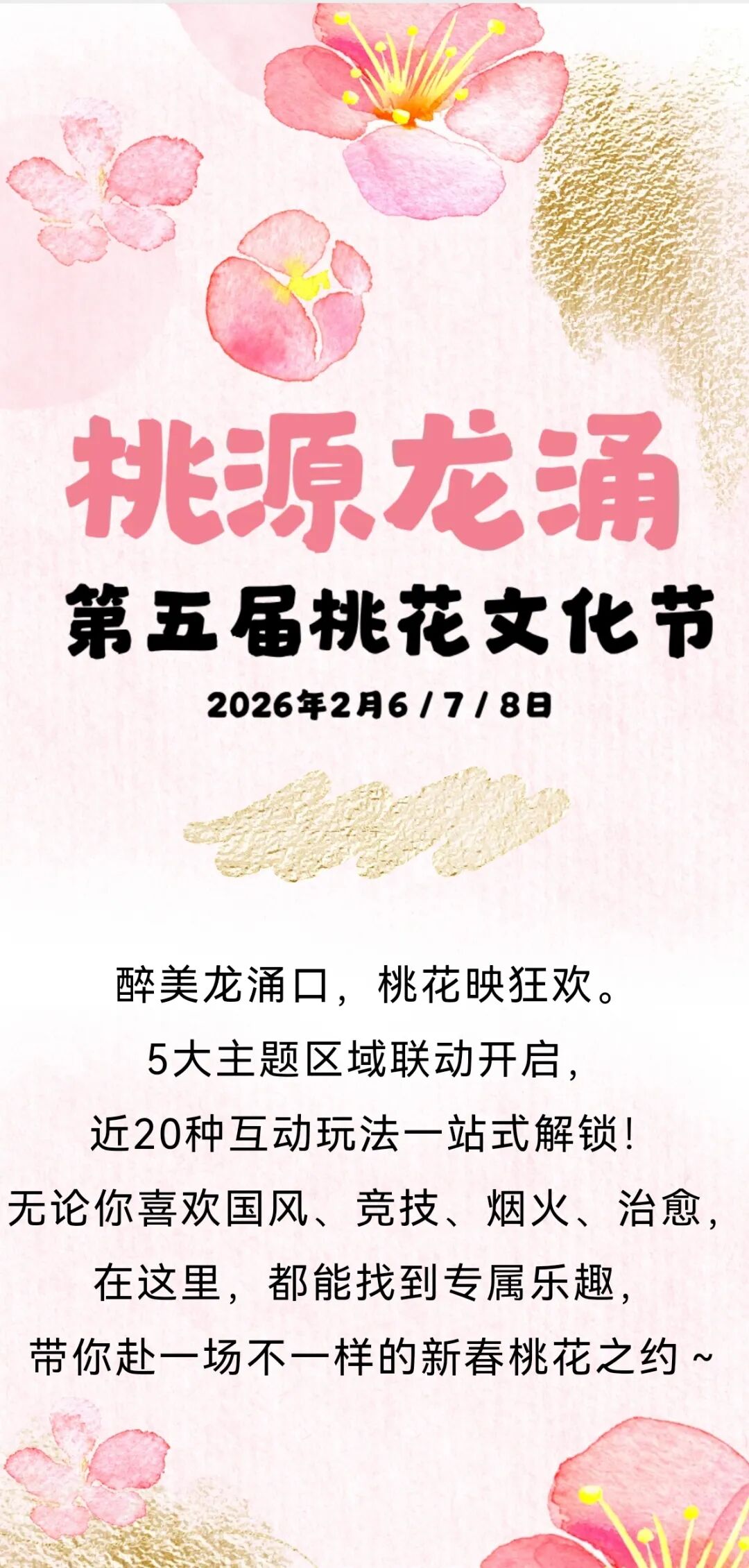 本届活动涵盖主题音乐会、古风集市、游园会、桃花插花赛、文化研学等内容。活动旨在以桃花为媒,串联文旅体验,开启文化传承新篇章。