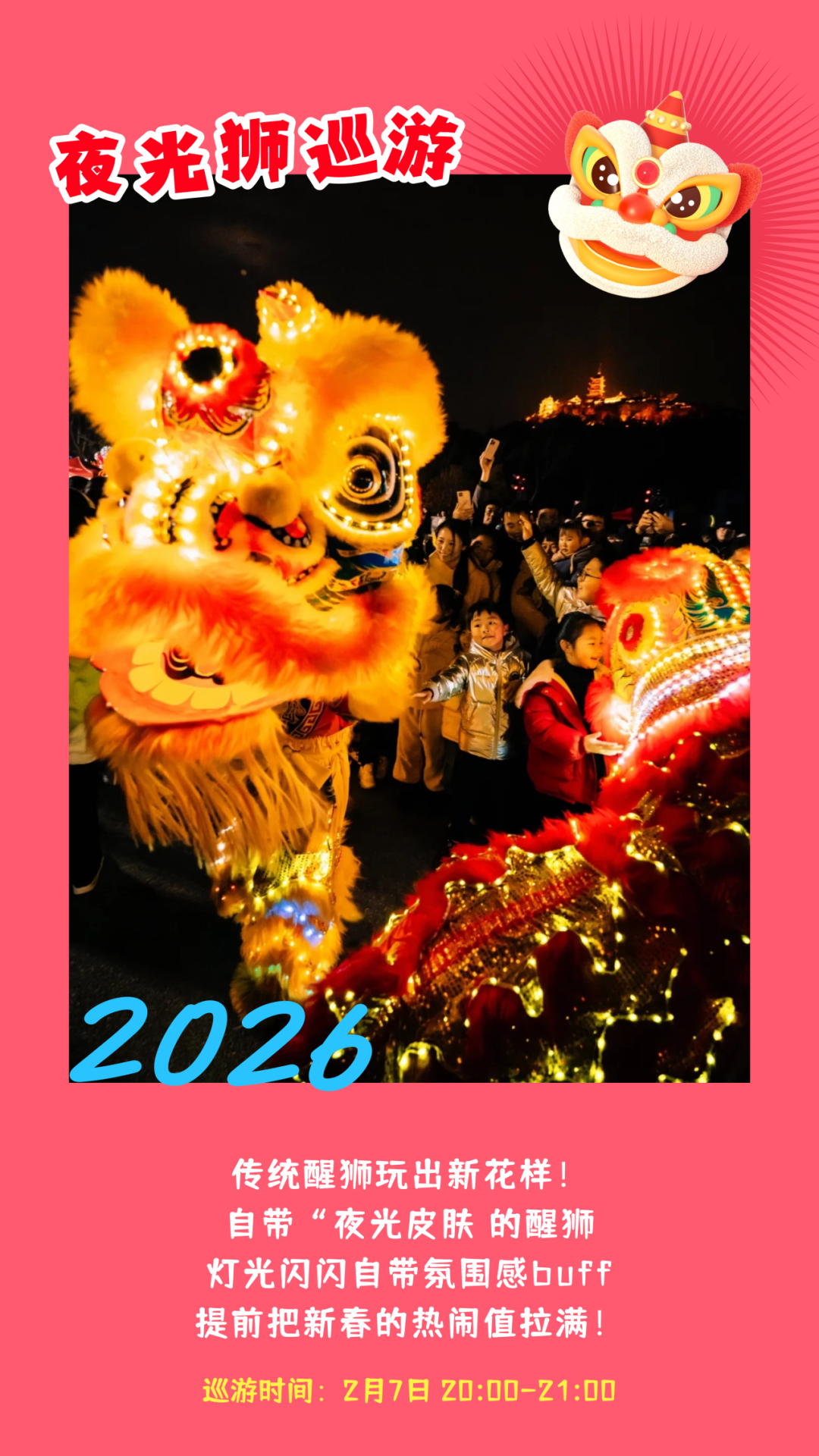 今年,这场热闹的民俗盛宴将首次“舞”动城央地标——文塔公园!由传统舞龙、醒狮、飘色与锣鼓柜组成的巡游队伍,将环绕省级文物单位文塔徐徐行进,承载着人们对新年风调雨顺、吉祥安康的美好祈愿。