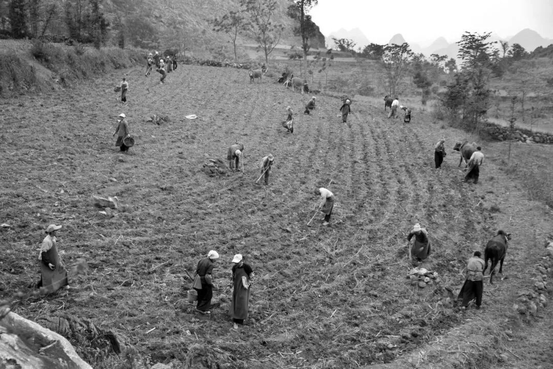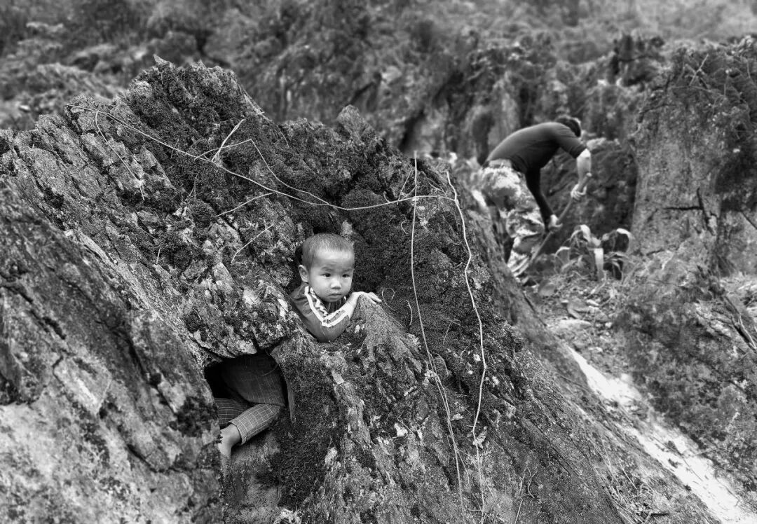 ▲边境一线土地资源匮乏,边民在石头窝里种玉米。2022年4月21日,那坡县百省乡