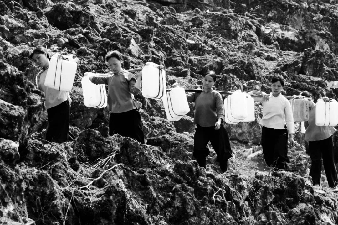▲干旱之年,妇女挑水上山浇地。2010年3月31日,那坡县百南乡