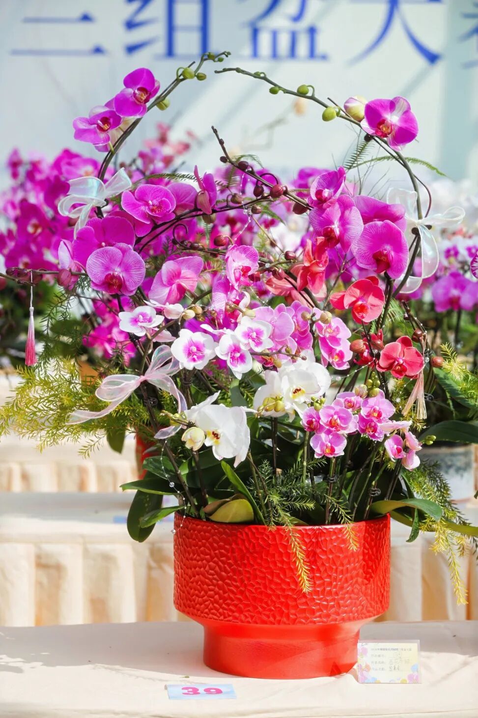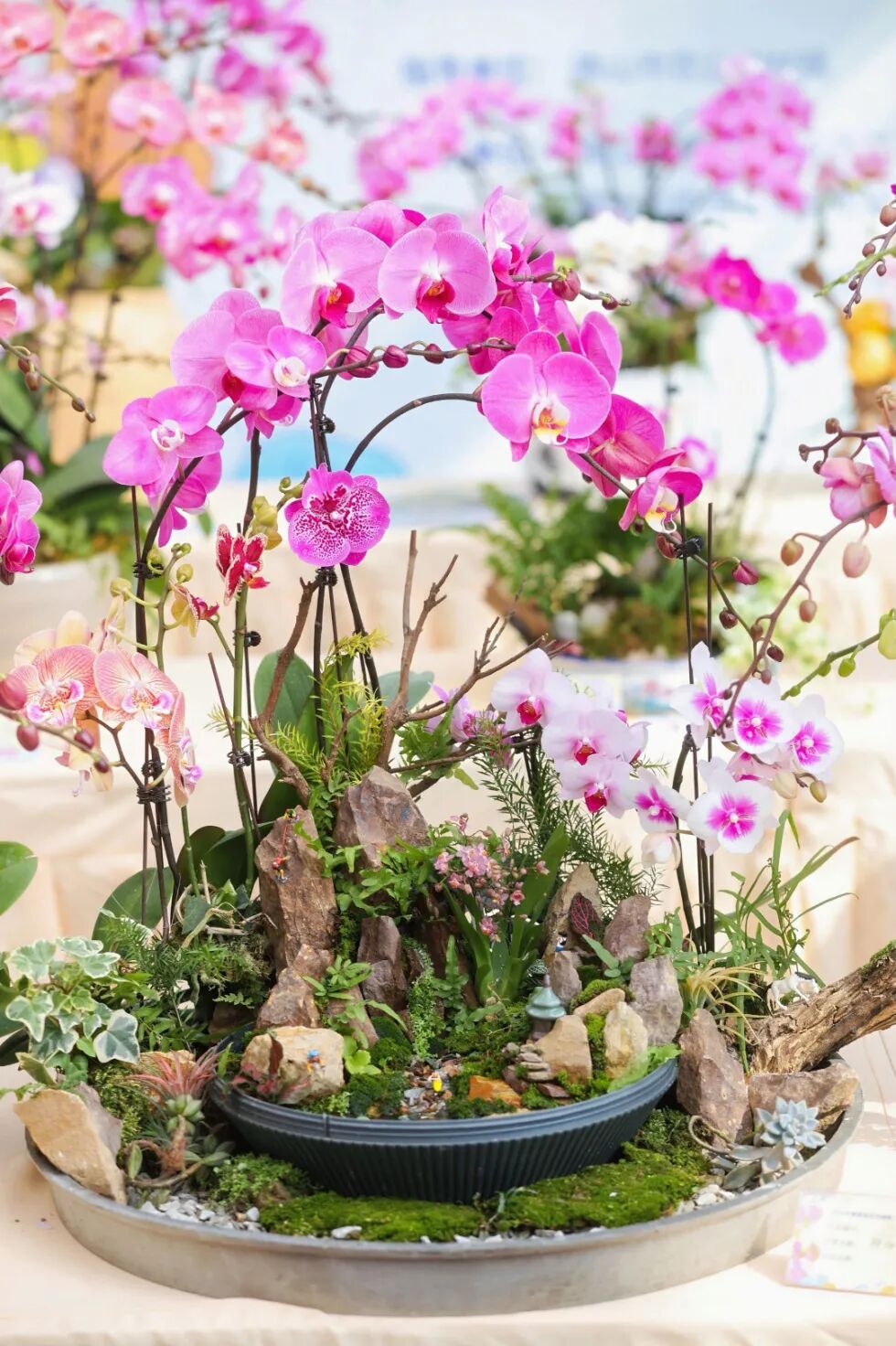 在盈收园艺内举办的蝴蝶兰创意组盆大赛现场,化身微型园林艺术展。参赛者以蝴蝶兰为视觉核心,巧妙融合山石、苔藓、枯木等元素,创作出意境深远、造型别致的组盆作品。来自大良的在校大学生何先生表示,参赛过程本身就是一次美育课,“看到了蝴蝶兰场景化表达的无限可能。”而本周日举行的“跟大师学组盆”工坊,将进一步向公众传授设计技巧,提升审美,拓宽消费场景。