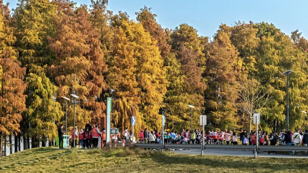 现在乌洲水闸正迎来一年一度的视觉盛宴,沿水成片的落羽杉林悄然换色,层层叠叠、由绿渐红,犹如大自然打翻的调色盘,将水岸渲染成一幅绚烂油画。碧水映红杉,光影叠清波,这般诗意的冬日画卷在水岸缓缓铺展,宛若一处静谧而热烈的秘境,令人情不自禁驻足流连。