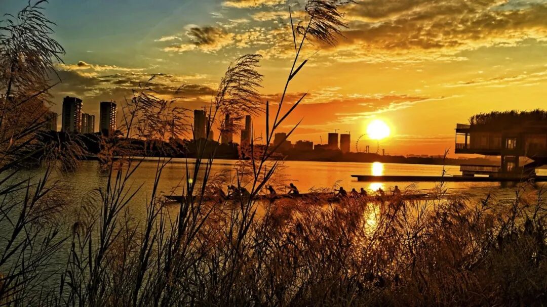 和青云湖一桥(伏波桥)之隔的桂畔湖,是大良的“生态名片”,野趣与浪漫在这里撞了个满怀。桂畔湖湖面开阔澄澈,岸边芦苇丛生,春有紫荆花海铺岸,夏有粉荷亭亭玉立,冬有落羽杉,随手一拍都是氛围感大片。