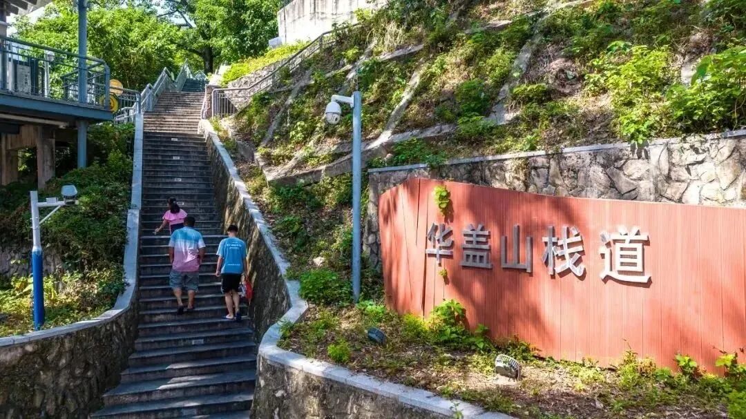 更妙的是,从这喧闹街市可步入一个空中秘境——华盖山栈道。这条环山而建的空中步道,宛如一条飘逸的绿丝带,将城市的喧嚣轻轻隔开。漫步其上,头顶是繁茂的树冠,身旁是葱茏的山色,既可俯瞰脚下骑楼街景的律动,又能享受一份藏于闹市之上的清幽与惬意,体验“出则繁华,入则宁静”的奇妙转换。