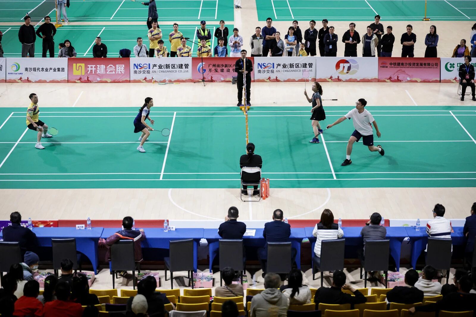 经过两天的激烈角逐,“园区贺岁杯”2026年南沙区羽毛球混合团体邀请赛于1月25日在南沙体育馆落下帷幕。自1月24日开赛以来,48支球队展开多轮交锋。1月25日,8支队伍进入淘汰赛阶段的争夺。最终南沙开建集团夺得冠军,互太纺织队、南沙资产经营集团分获亚军、季军。