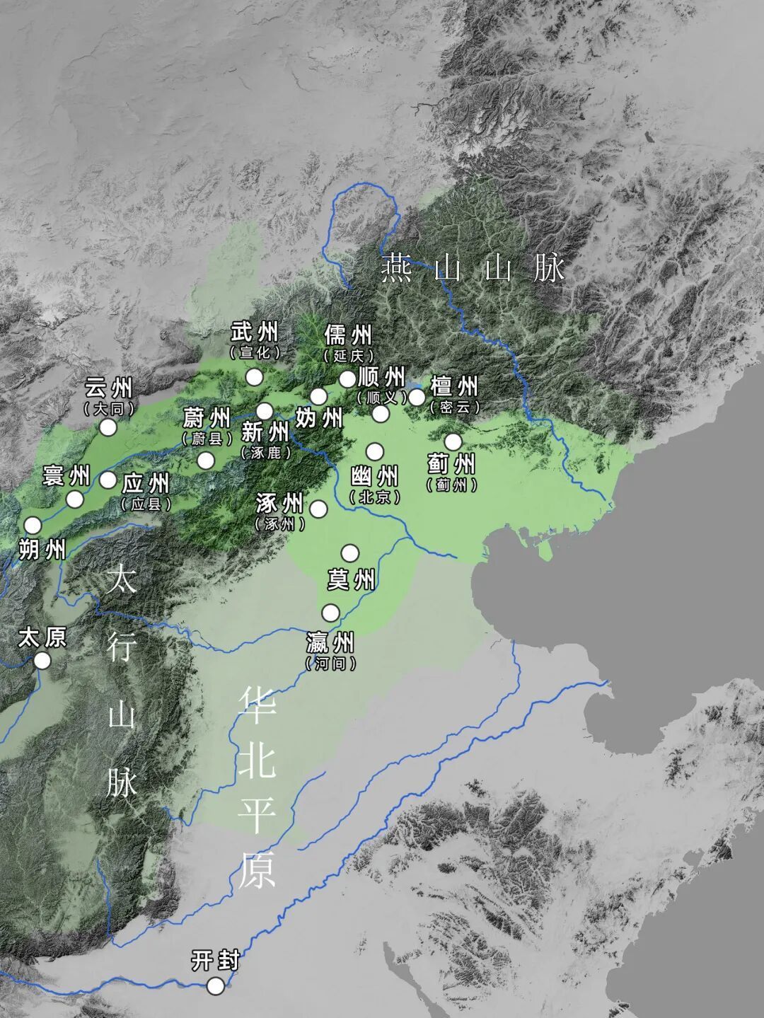 ▲燕云十六州地理位置,图源:锦绣人文地理