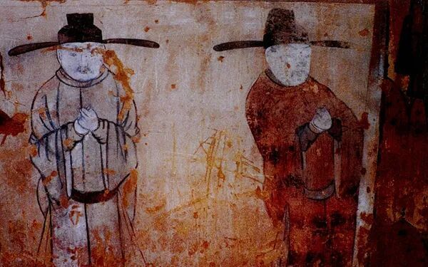 ▲后周顺陵甬道东壁文吏迎侍图,图源:网络