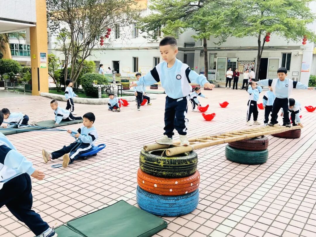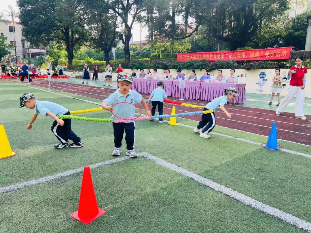 河村幼儿园秉持“文武兼修”发展理念。“文”以打造“书香校园”为核心,通过“五式”阅读策略、创设多元阅读空间及丰富活动,将阅读融入幼儿一日生活,有效培养终身阅读习惯,在书香校园评比、幼儿阅读展演、教学活动案例、教学设计等多项评比与比赛中屡获佳绩。“武”以“乐·趣户外体育游戏”课程为抓手,优化运动区域布局,配备专业器械。其中,游戏化的跳绳教学显著提升幼儿协调性、力量与意志品质。依托完善的“武”韵课程体系,幼儿园在里水镇体适能大循环、玩绳大循环、幼儿个人体适能项目、师幼花式跳绳等赛事中表现突出,充分彰显体能教育成效。
