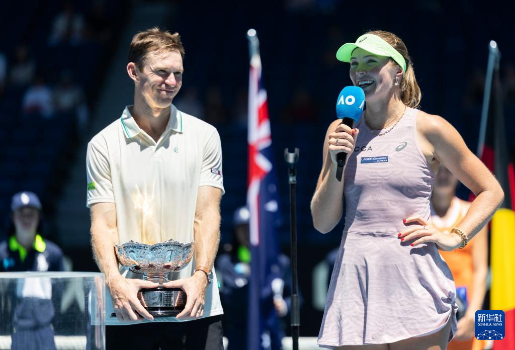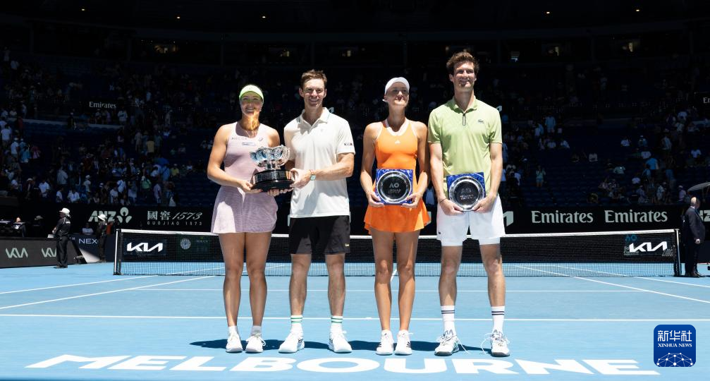 当地时间1月30日,在墨尔本进行的2026年澳大利亚网球公开赛混双决赛中,澳大利亚组合盖德基/皮尔斯2比1战胜法国组合姆拉德诺维奇/吉纳尔,夺得冠军。