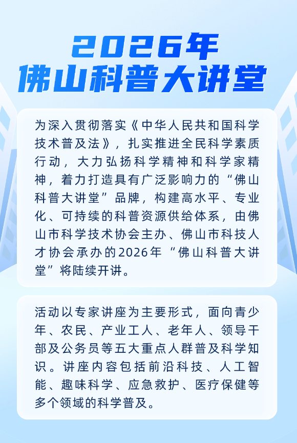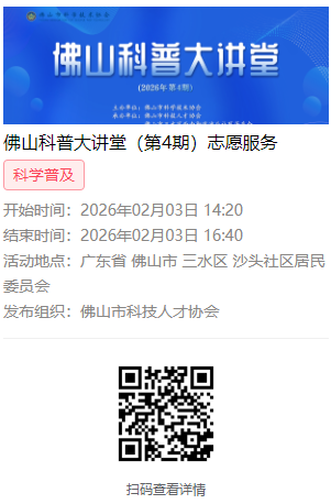 “佛山科普大讲堂”为公益性活动,本期同步推出科技志愿服务。欢迎扫码报名参加志愿服务,累计志愿服务时长,全国通用。