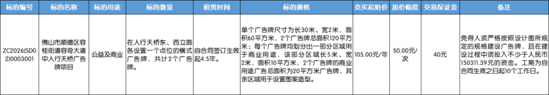 1.项目名称:佛山市顺德区容桂街道容奇大道中人行天桥广告牌项目