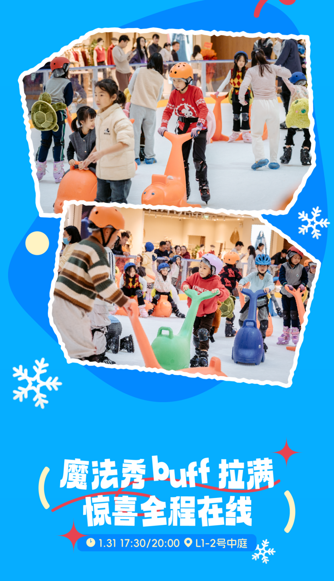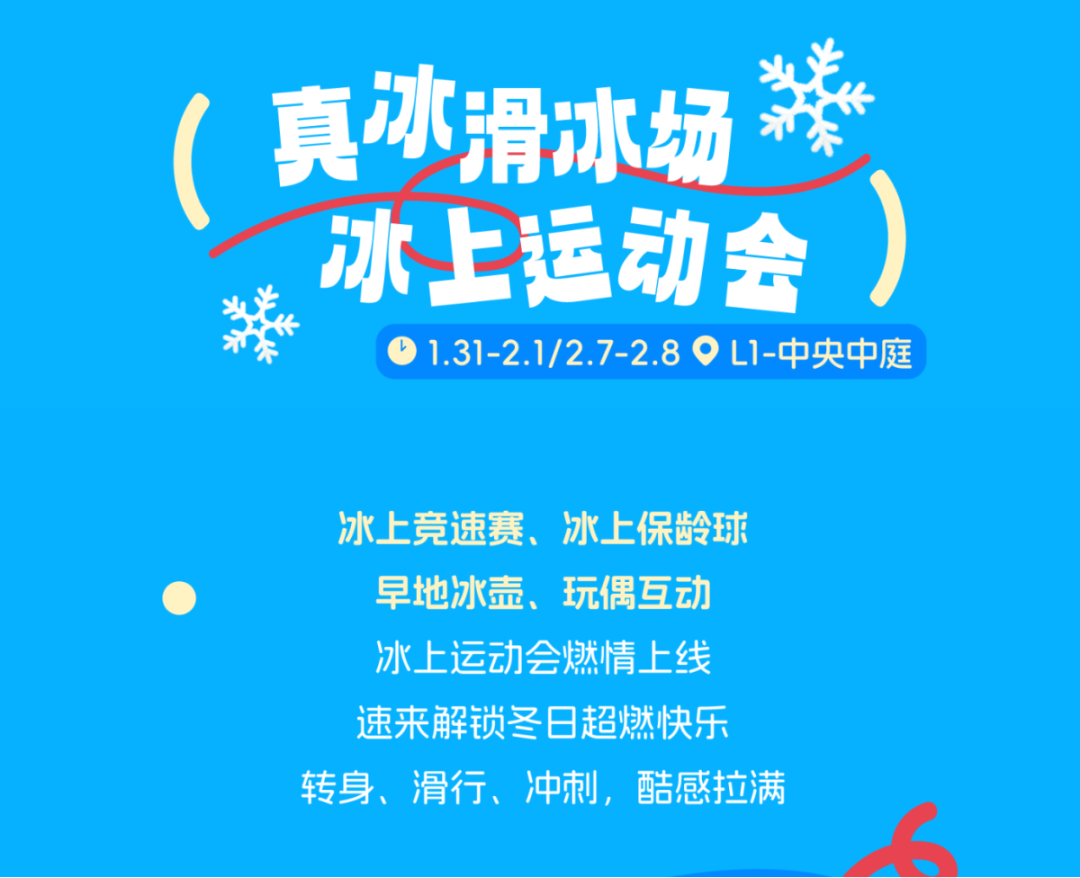 马年玩点新花样,冰上运动会燃情上线!冰面赛场解锁新春新玩法,策马扬“冰”迎新年,赛场之上,快乐夺冠,马年好运全拿下~还有超燃魔法秀、写挥春、年味墟等活动邀你参加!