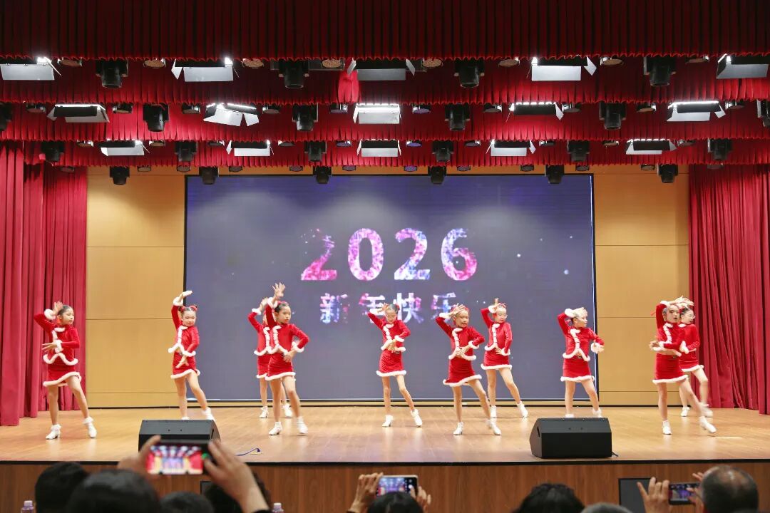 教师代表带来的《彩云追月》悠扬婉转,该节目曾获三水区教师文艺汇演声乐组第一名,为学子树立了榜样;南边小学的拉丁舞《新年快乐》热情奔放,用动感的舞步点燃了全场的节日气氛;三水高新区第一小学粤韵·方圆乐团演奏的《龙飞凤舞》,则以金奖的实力展现了广东音乐的蓬勃生命力。最后,范湖小学与湖湾幼儿园联手呈现的非遗节目《狮意传承》鼓点激昂、醒狮跃动,象征着乐平少年如龙狮般矫健昂扬的精神风貌。最后,活动在全场大合唱《把未来点亮》中圆满结束,为汇演画上圆满句号。